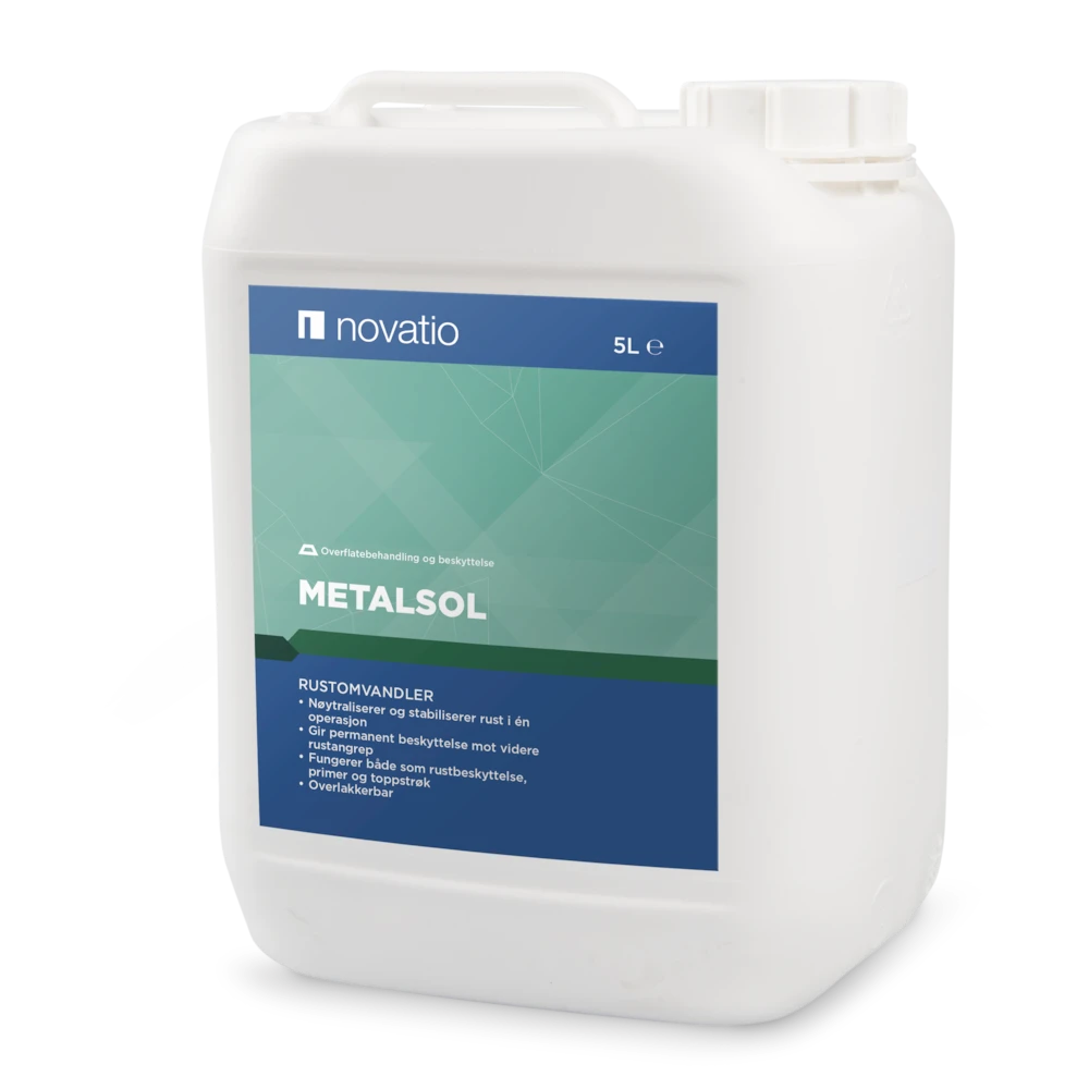 Metalsol er en mælkehvid syntetisk emulsion, som konverterer jernoxiderne til et hårdt, sort lag efter kontakt med stål og under indflydelse af luftfugtighed. Det organiske metallag, som er opnået efter tørring, vil beskytte overladen mod ny rustdannelse.